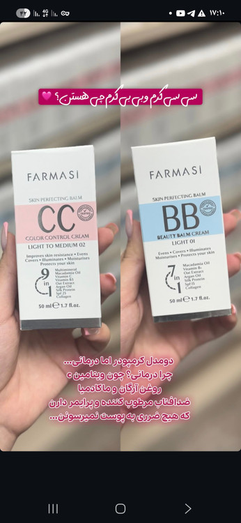 کرم های BB و CC فارماسی به دلیل ترکیبات مراقبتی و پوشانندگی سبک خود، برای استفاده روزانه مناسب هستند. کرم BB فارماسی حاوی هیالورونیک اسید و روغن آرگان است و برای شادابی و احیای پوست و کاهش علائم پیری مناسب است. کرم CC فارماسی حاوی ویتامین B3 و C است و برای بهبود بافت پوست، کاهش قرمزی و التهاب و روشن شدن پوست مناسب است.